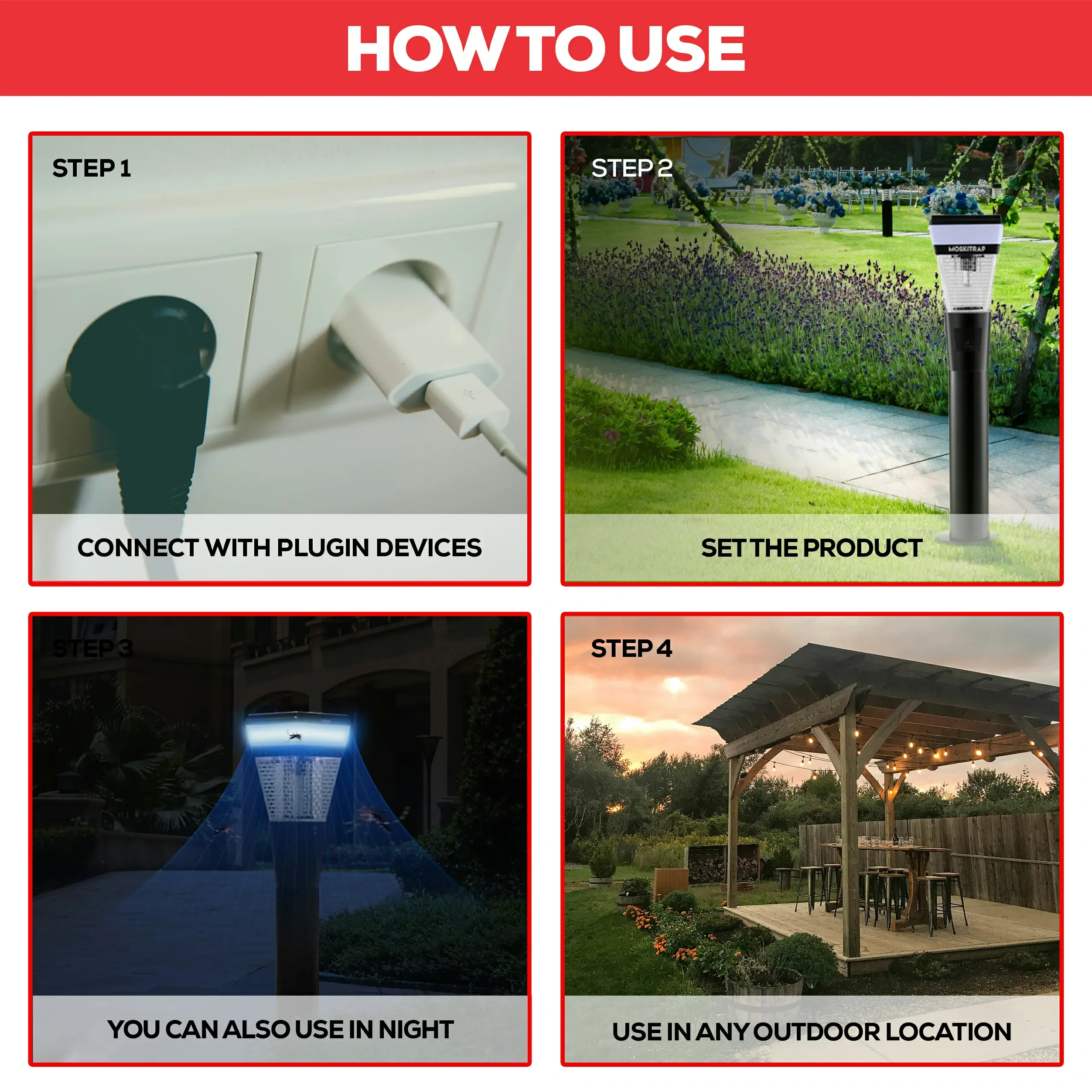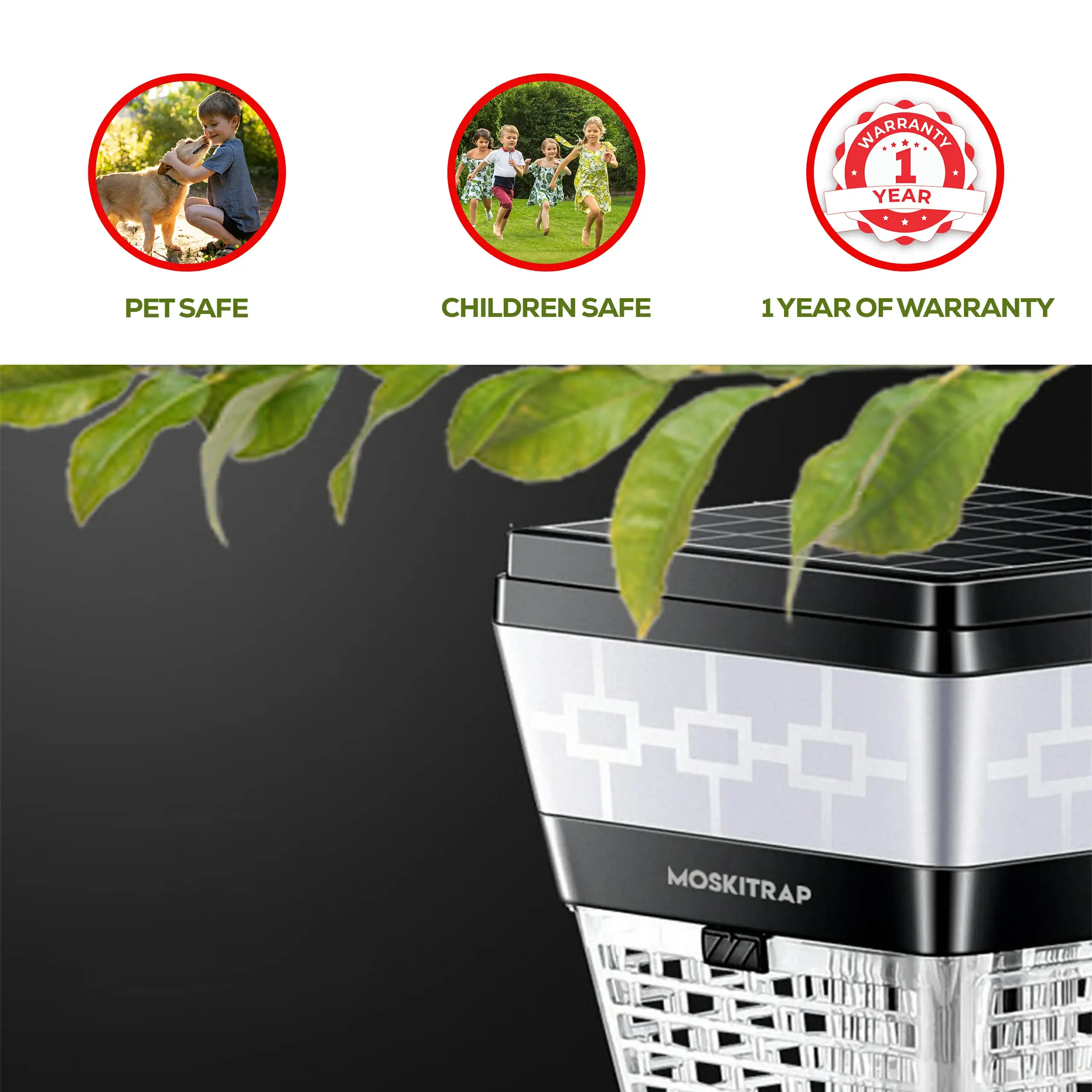 MOSKITRAP GM937 Outdoor Solar Powered Mosquito Zapper Trap | Covers up to 600 Sq. Ft