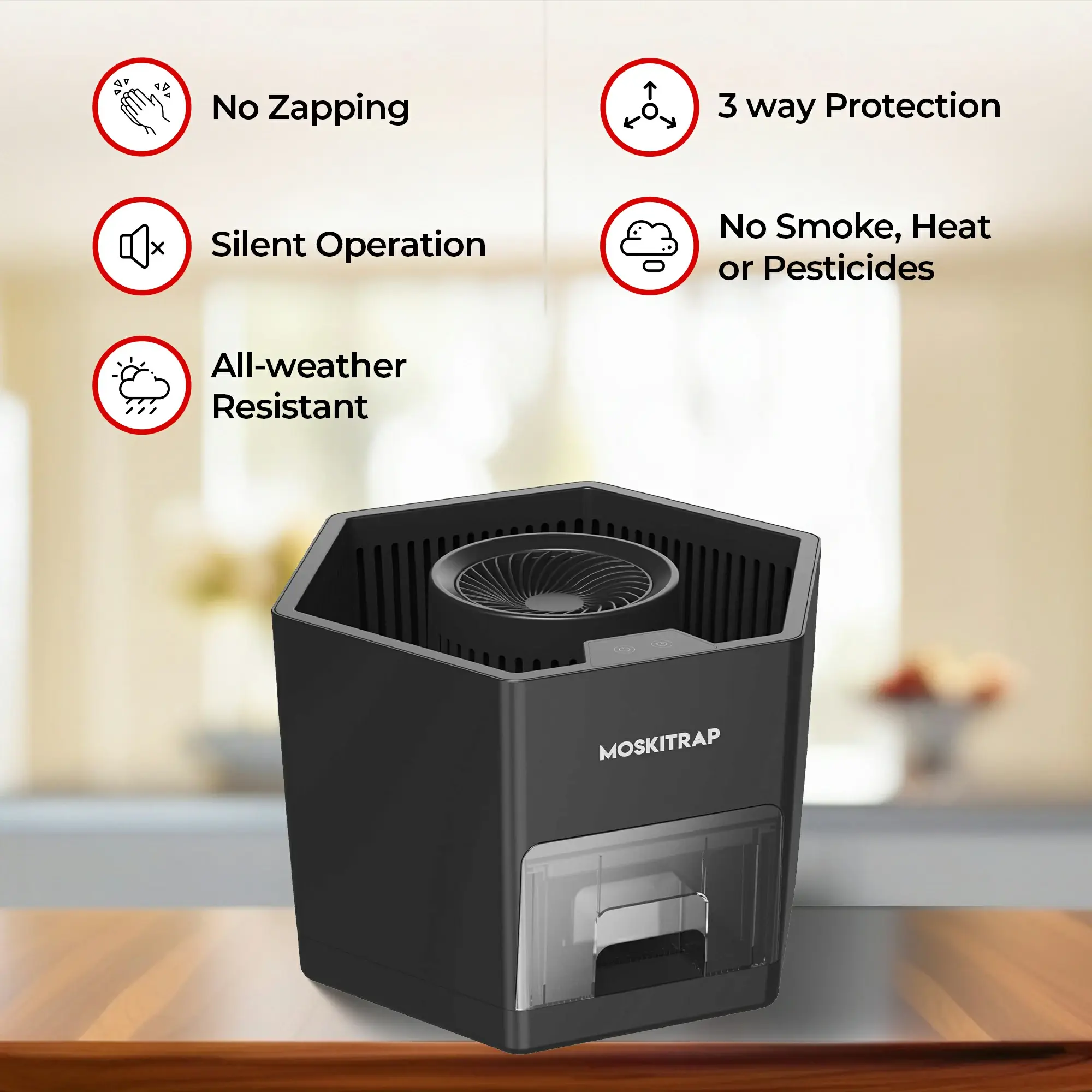 The Inhalor Mosquito Trap offers next-gen protection with a unique booster and powerful airflow that traps mosquitoes silently—without chemicals or zapping. Designed for both indoor and outdoor areas, it ensures peace and safety around your home or workplace.