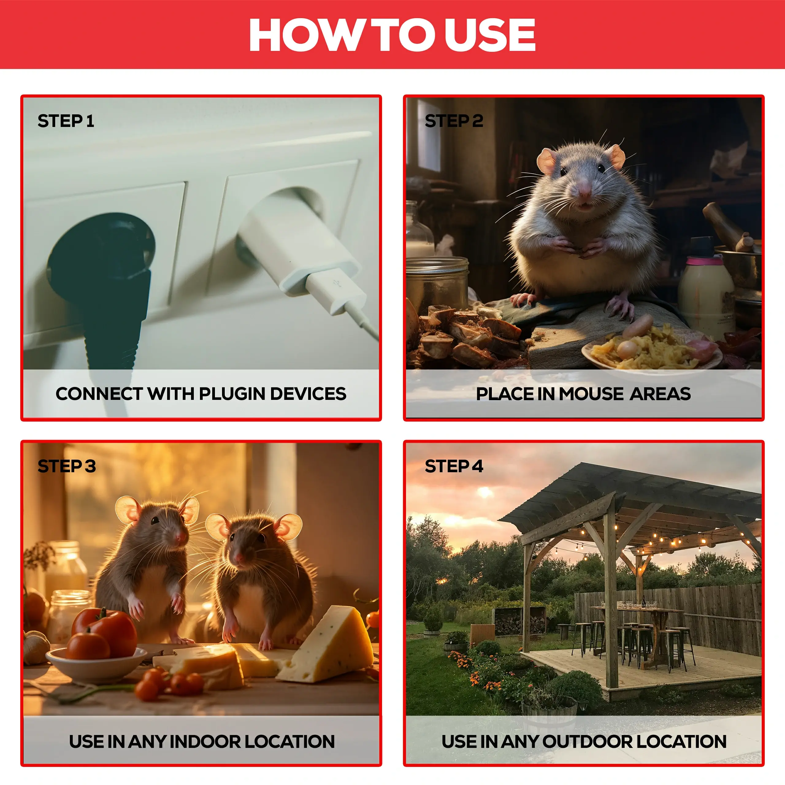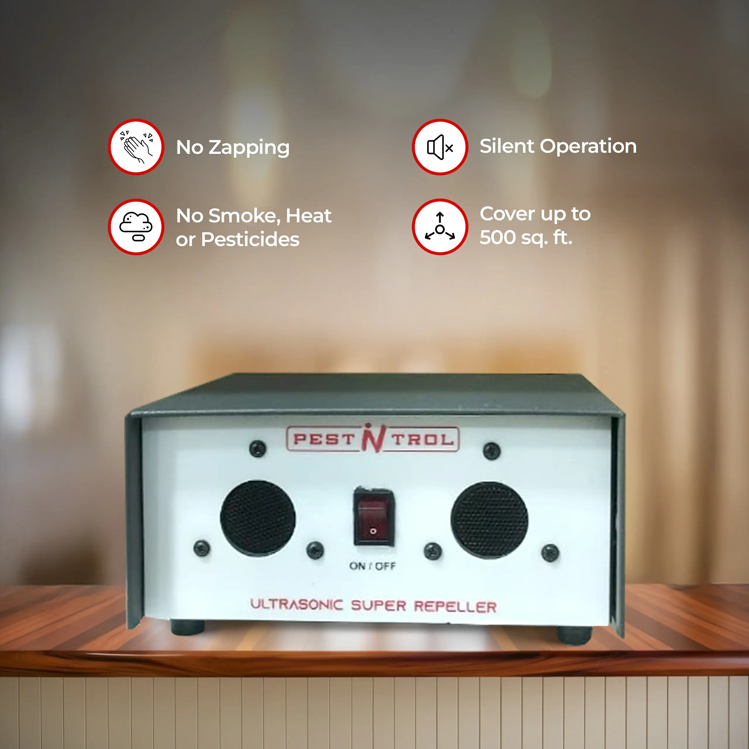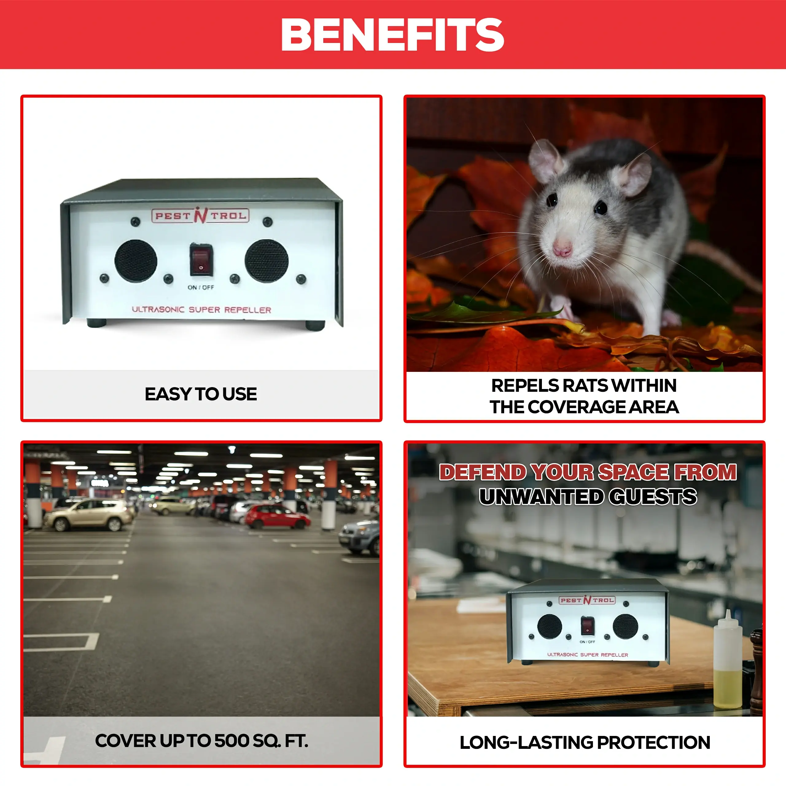 PNT 1100 MINI ULTRASONIC REPELLER combines our 2 unique technologies, “Automatic Frequency Change” and “Adjustable Sweeping Speed” which can prevent rodents from getting used to a single-frequency sound by changing frequency and speed all the time. These intense ultrasonic waves directly attack rodents’ auditory and central nerve systems to drive away these unwanted animals from your place without using toxic chemicals or killing them.